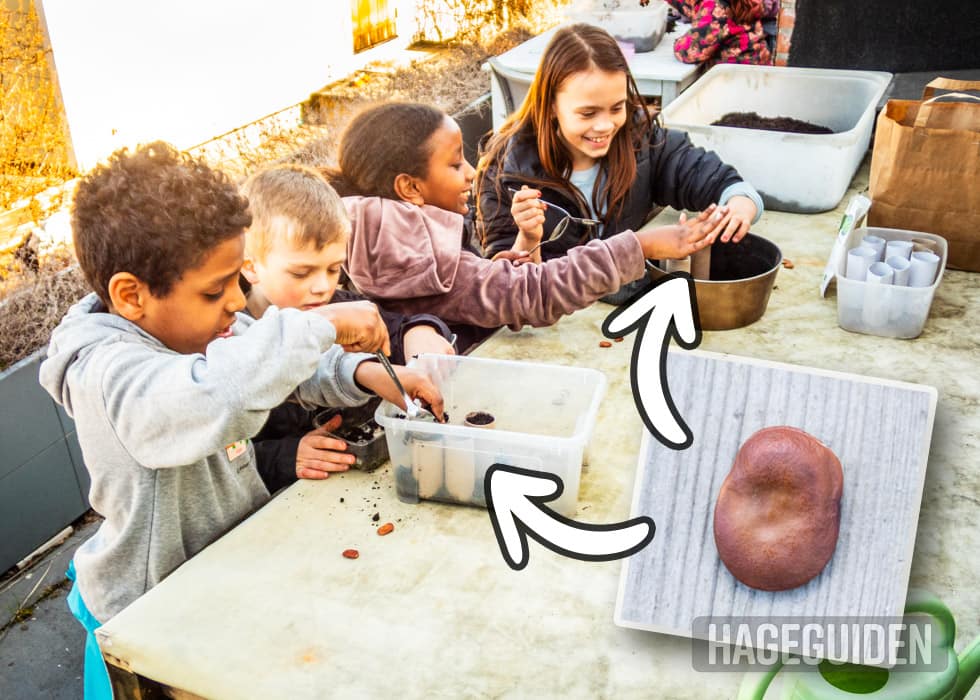 Dyrking med barn: Så sukkererter og bondebønner i dorullhylser