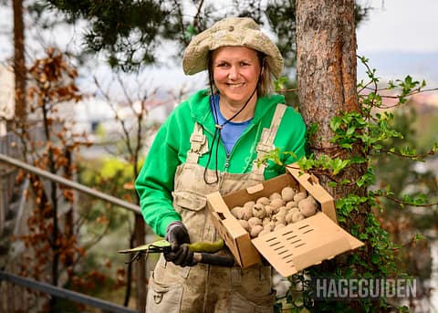 Legg 5-10 cm grus, småstein eller leca-kuler i bunn av hullet for å skape god drenering. Bland gjerne inn litt kalk i den jorden du fyller rundt planten. Pass på at det er en liten forhøyning rundt planten, slik at vannet renner bort når det regner mye.