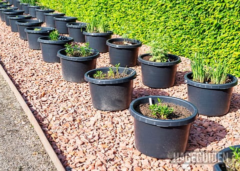 • Legg et lag med leca-kuler i bunnen på den nye potten.