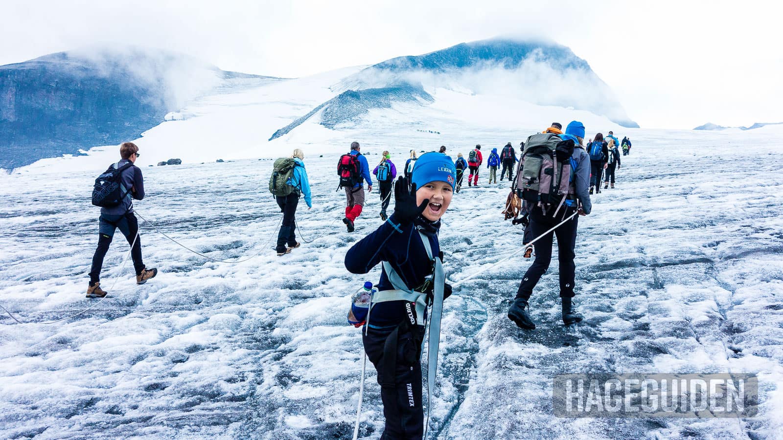 For barna er det stas å gå i taulag over breen.