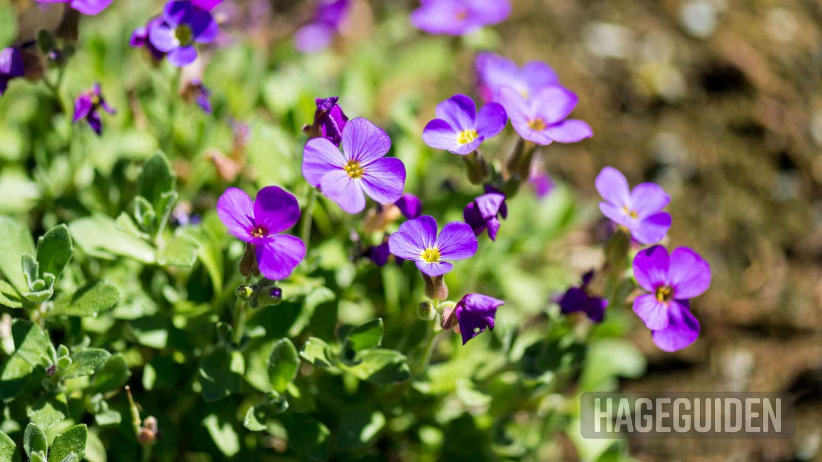 Har du et steinbed eller for eksempel en mur du ønsker å dekke til, er hagepute (Aubrieta) et godt valg. Den danner et teppe av små, blå blomster som brer seg utover med blomstring i mai-juni. Trenger et solrikt voksested og godt drenert jord. Hardfør til H7.