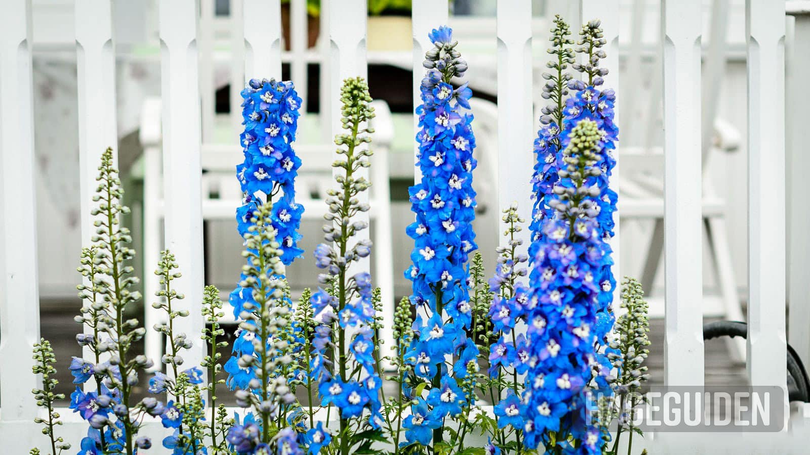 Riddersporer er hardføre stauder som vokser seg høye og flotte for eksempel i hagen til Trine i Vang i Hedmark.