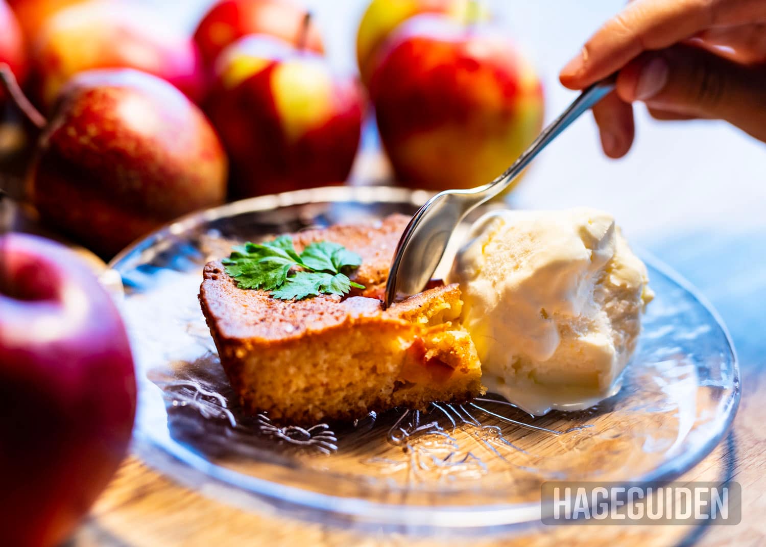 Med en liten kule vaniljeis ved siden av, smaker eplekaken enda bedre.