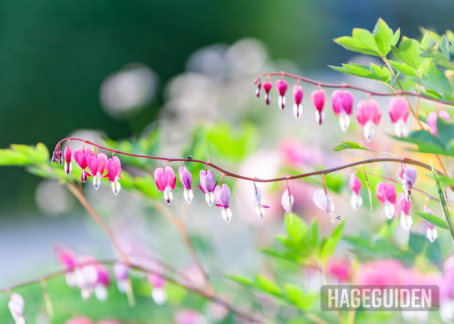 Løytnantshjerte (tidligere Dicentra spectabilis, nå Lamprocapnos spectabilis) er også en av vår-staudene våre som blomstrer lenge. Den rosa og mest vanlige varianten stortrives og blir en meter høy og tilsvarende bred i vår hage. Den blomstrer i hvert fall en måneds tid fra mai til juni.