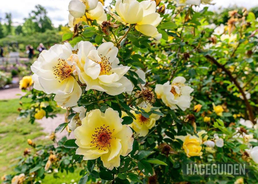 Pimpinell-roser er historiske buskroser. Denne er fotografert i Trädgårdsforeningen i Gøteborg.