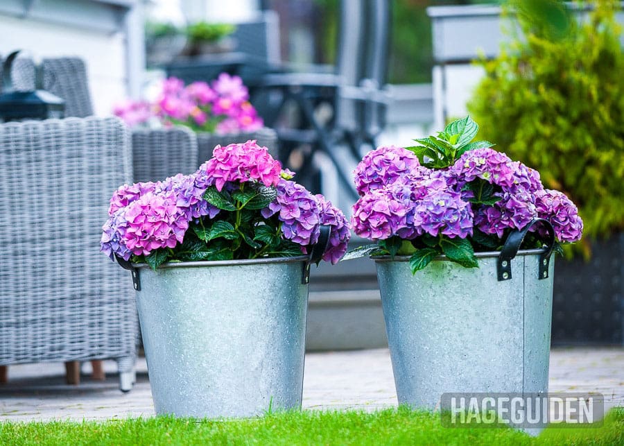 Hortensia er favoritten til mange, og kan gjerne stå i krukke over sommeren. Skal du ha den til å overvintre bør krukkene enten settes i en kald kjeller eller du kan plante ut hortensia i et bed i hagen.