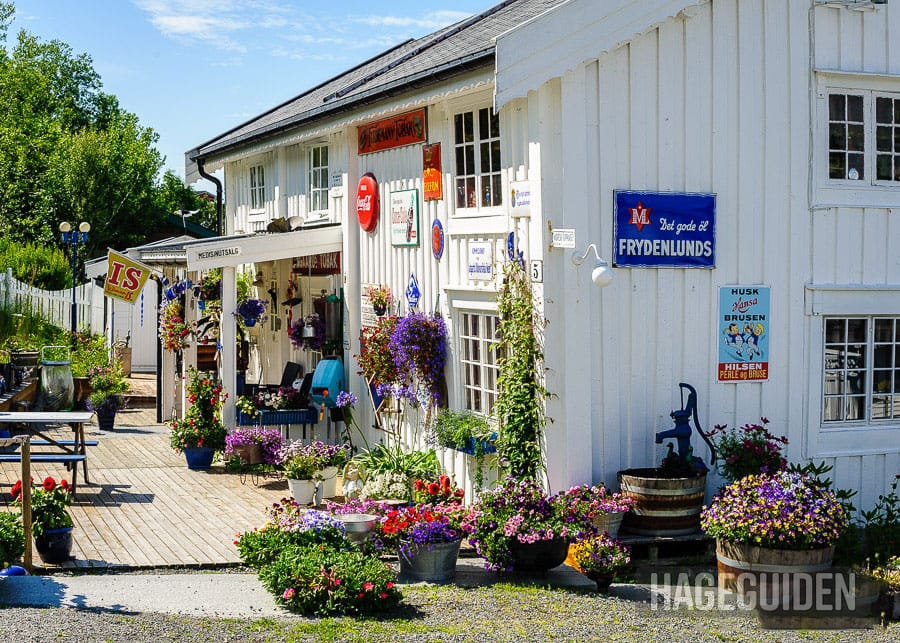 I denne hagen er det ikke så mye plass til å plante i bakken, noe eierne har løst med å plante i ulike krukker og kar.