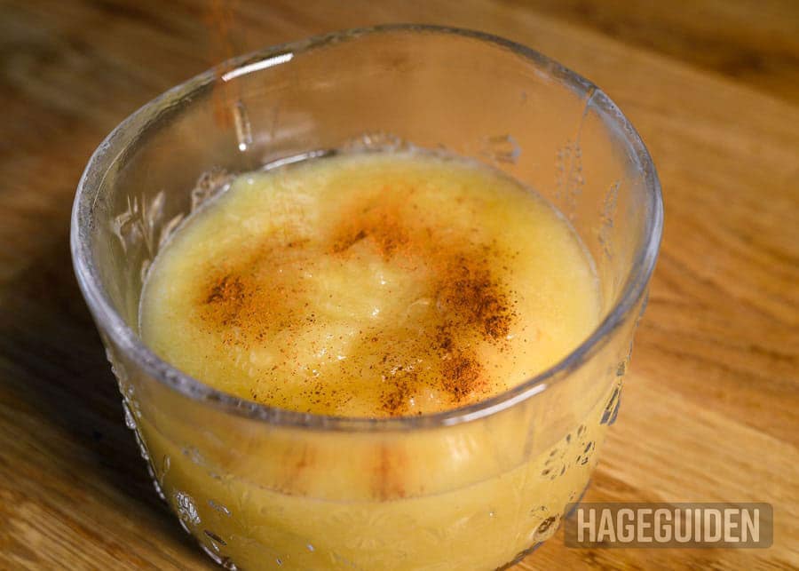 Ingredienser: Epler, vann, sukker, kanelstang og strø-kanel.