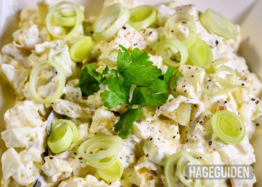 Hjemmelaget potetsalat er en sikker vinner på et koldtbord!