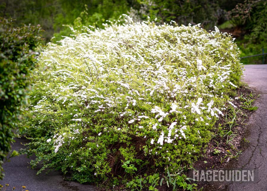 Brudespireahekken på vårt fellesområde ble klippet helt ned for noen år siden, og er nå blitt veldig fin igjen med massevis av hvite blomster.
