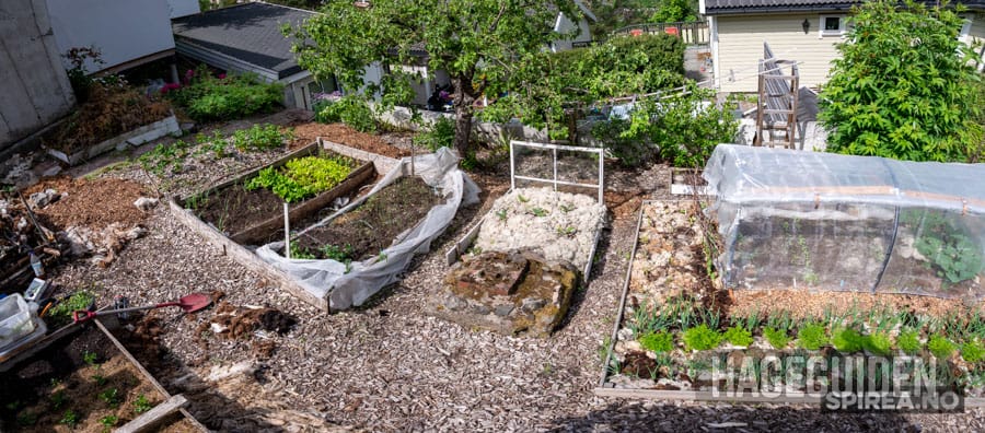 I mangel av sol på egen tomt, har vi lånt naboens solrike hage til å lage kjøkkenhage.