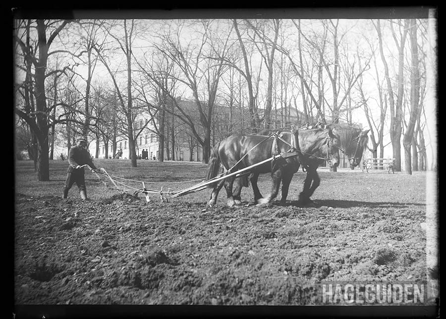 Under 1. verdenskrig ble store deler av Slottsparken pløyd opp for å dyrke poteter. Hvem ga ordren? Kong Haakon 7. Foto: Narve Skarpmoen