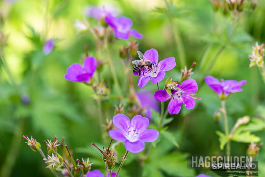 Både insektene og vi elsker våre storkenebb, som står i blomst nå i juni.