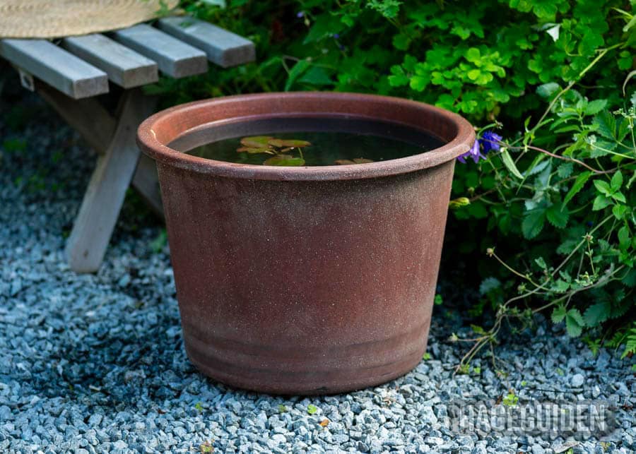 Dropper du hull i bunn, kan du bruke «juksakotta»-potta til et lite vannspeil. Det vil både fugler og insekter sette pris på.