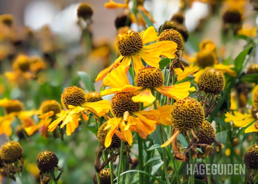 Den gule solhatten passer supert i rabatter, og holder seg fin hele høsten.
