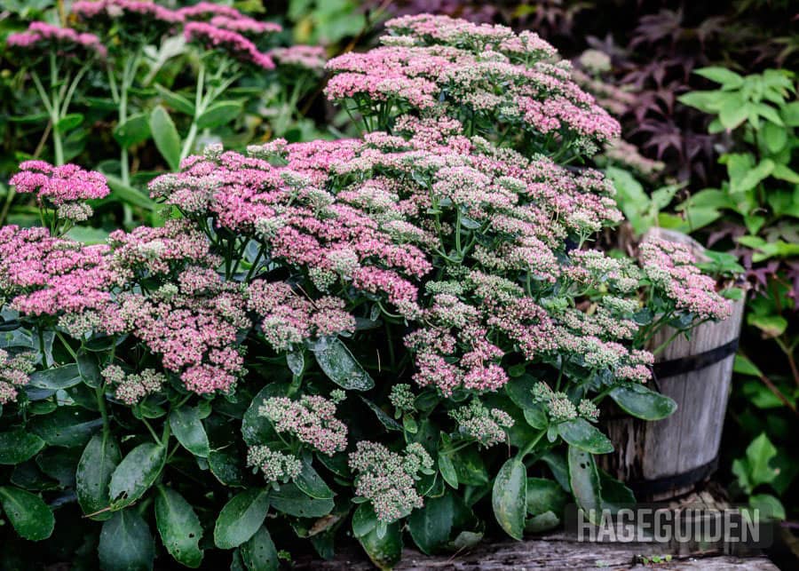 Som navnet tilsier begynner ikke oktoberbergknapp (Sedum spectabile) før det nærmer seg oktober måned, men du kan nyte det flotte bladverket hele sesongen.