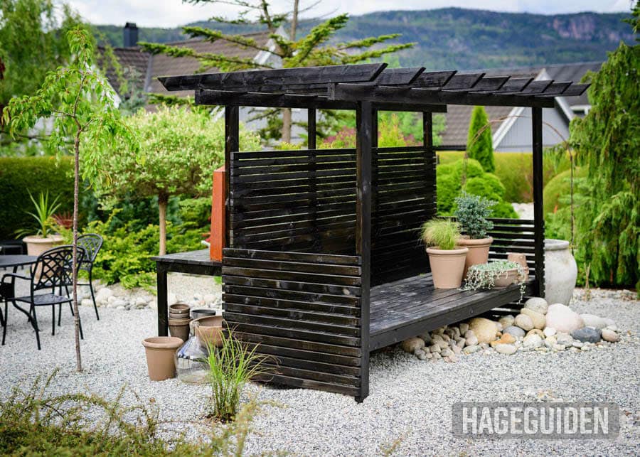 Diana liker å snekre ulike ting til hagen, som denne kombinerte daybeden og pergolaen.