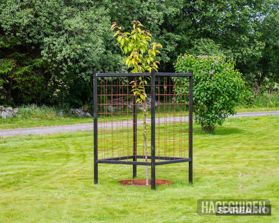 Dette prydkirsebærtreet har fått en effektiv beskyttelse mot store hjortedyr.