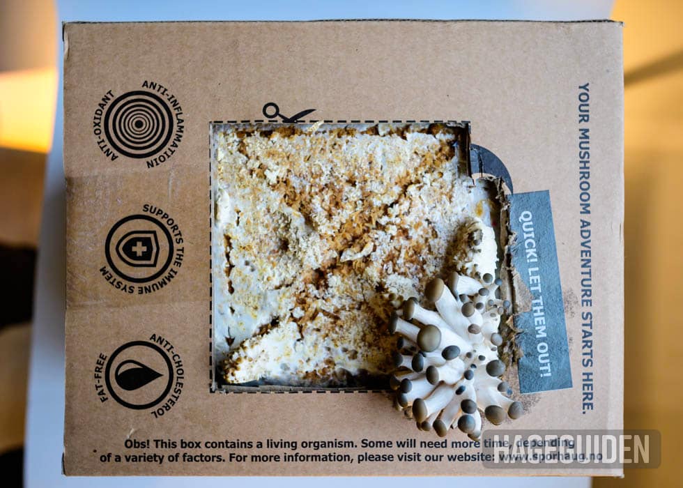 Jeg hadde sett bilder i sosiale medier, av sopp som bokstavelig talt vokser ut av en pappeske. Det måtte jo være en perfekt julegave til Hageguidens fotograf og alt-mulig-mann Tore!