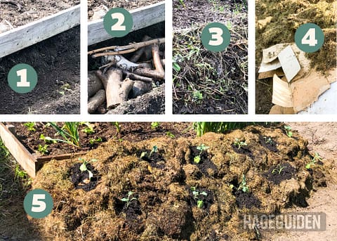 Forbered gjerne bedet du skal dyrke i, allerede høsten før, eller tidlig på våren i dyrkingssesongen: Fyll pallekarmen/bedet med papp, kvist og kvast, løv, gressklipp, hestemøkk, kompost og andre ting du måtte ha tilgjengelig av organisk materiale. Tråkk det godt ned, og dekk med jord. Du kan også vente med å legge på jord til du skal plante, så slipper du at det blir mye ugress før du skal plante.