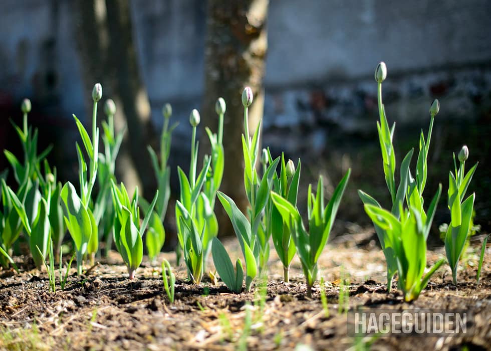 Det som skjer nesten hvert eneste år hos meg, er at spesielt tulipanene spirer og kommer opp av bakken før vinteren. Jeg har prøvd å sette løkene i september, oktober og november, og det samme skjer hver gang.