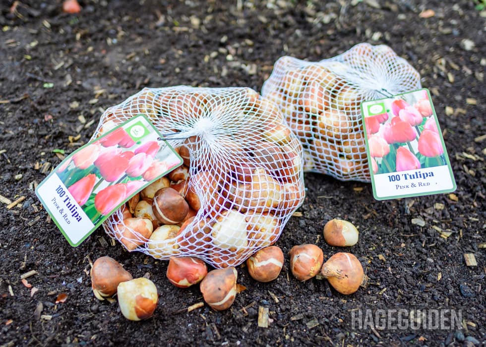 Tips: Er du plaget av jordrotter/vånd i hagen, kan disse spise opp tulipanløkene. Dette kan du unngå ved å legge netting (f eks finmasket hønsenetting) UNDER løkene.