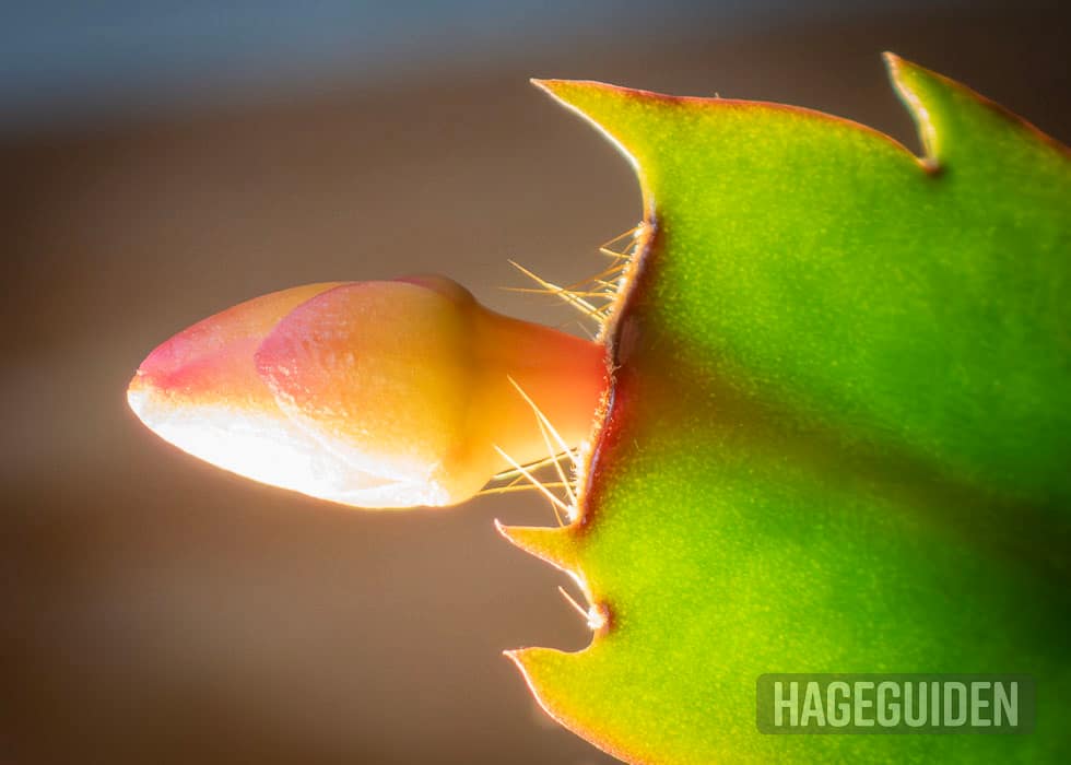 På normal avstand er det ikke lett å se at novemberkaktus er nettopp det – en kaktus. Men går du nært nok, ser du kaktusens karakteristiske pigger.