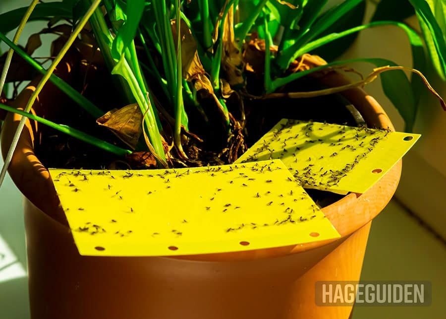 Det er også viktig at du vanner pottene fra undersiden, og ikke lar det stå vann igjen på skåla. Dersom jordskorpen er tørr, vil det ikke være like lett for hærmyggen å få lagt eggene sine.