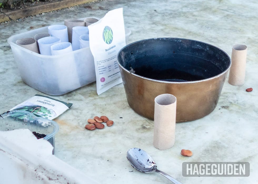 Erter og bønner tåler ikke så godt å prikles eller omplantes, da blir røttene lett ødelagt. Derfor er det veldig smart å så frøene i dorullhylser av papp. Da kan du nemlig plante ut hele dorullen, uten å forstyrre røttene. Pappen vil gå i oppløsning etter kort tid i jorda.