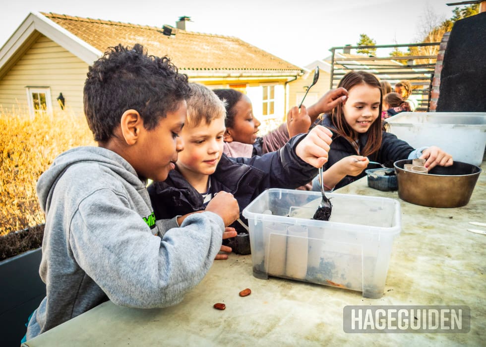 Skal du få barna interessert i hage og dyrking, er det veldig lurt å starte med noe som er lett å mestre, i tillegg til det gir raske resultater. Sukkererter og bondebønner har store frø som er lett å håndtere av små barnehender, og de fleste barn liker å spise sukkererter.
