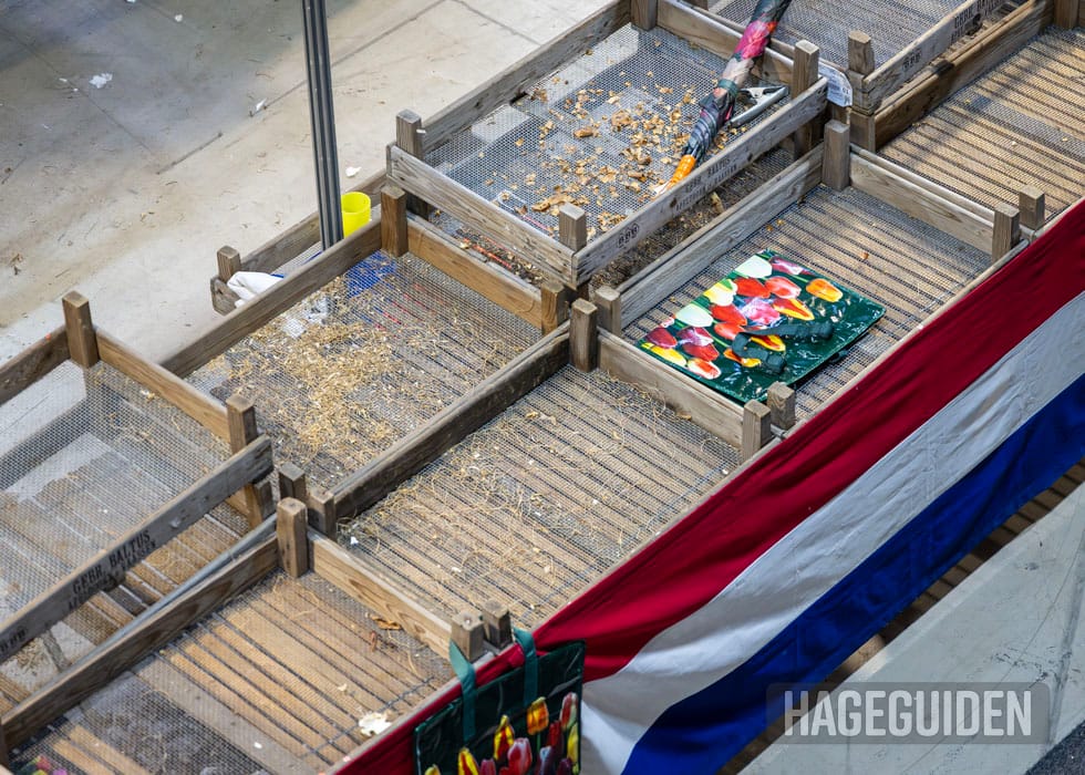 Løk og knoller fra Nederland er alltid populært, men da dette bildet ble tatt 2 timer før stengetid på messens siste dag, var kassene tomme.