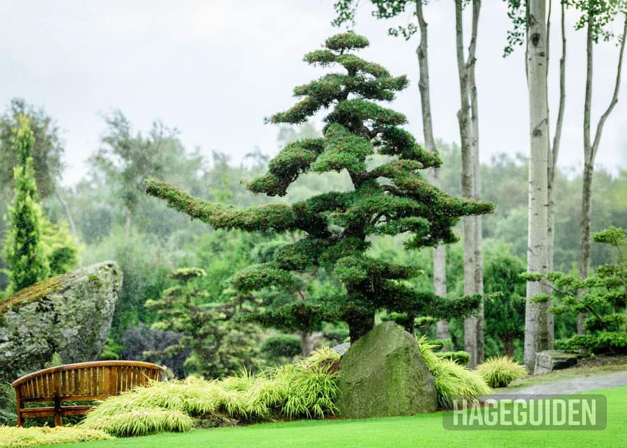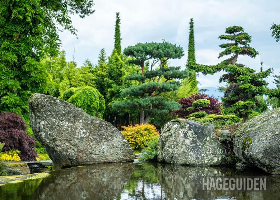 Overalt vokser spesielle busker og træ, mange av dem klippet i fasong som her i den japanske hagen.