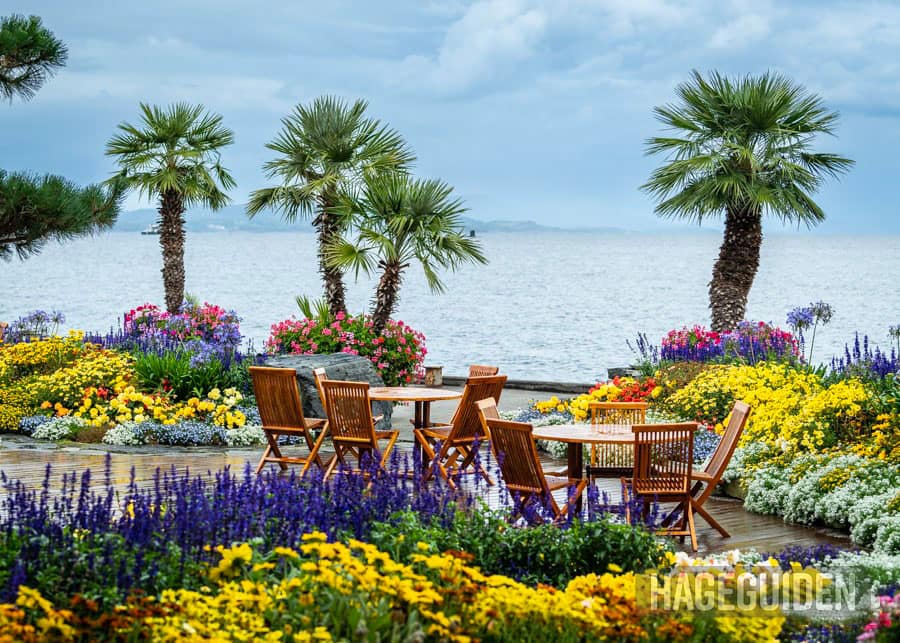 Synet som møter oss når vi går i land på øya Sør-Hidle, er et gedigent blomstrende norsk flagg av flittiglise og lobelia. Følger vi stien innover, vokser palmer, kaktus og velfriserte tujaer i et bugnende, fargerikt eventyrlandskap.