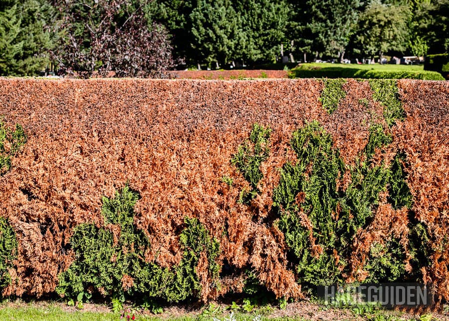 Denne tujahekken ble tørkeskadd etter den iskalde våren i 2013. Hvis dette skjer kan ikke hekken reddes, den er å anse som ødelagt.
